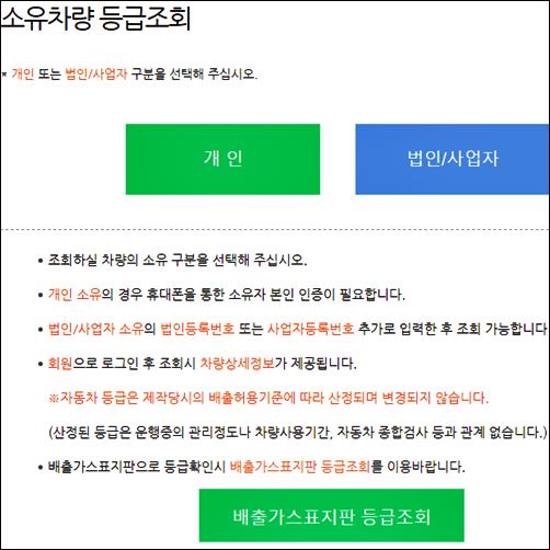 (자동차 배출가스 등급제 누리집에서 확인 가능합니다. 아래 링크를 클릭해서 확인해 보세요.)
