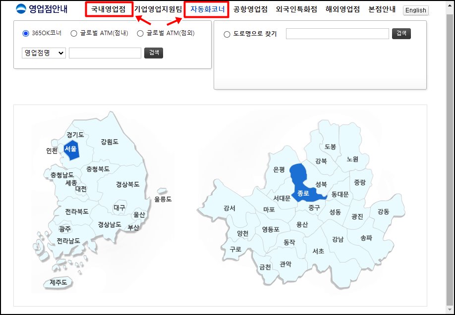 참고로 모바일(스마트폰)에서 자동화기기및 영업점 찾기기 쉽지 않네요. 홈페이지 주소는 변경이 거의 되지 않으나, 자동화기기가 있는 맵주소(인터넷 주소)는 변경될 수도 있어서, 직접 홈페이지로 들어가서 자동화기기 위치를 찾게끔 하고 싶었으나, 모바일에서 찾기가 쉽지 않아 자동화기기 위치를 볼 수 있는 지도를 링크 걸어 놓았습니다.