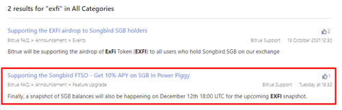 지금까지 비트루 거래소(Bitrue)의 EXFI 에어드랍에 대한 송버드(SGB) 보유 스냅샷 정확한 시간에 대해 공지사항을 찾아 알아 보았습니다.
