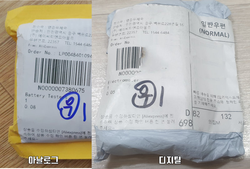 그럼 알리에서 구입한 대부분의 건전지의 잔량을 측정할 수 있는 디지털 잔량체크기와 아날로그 잔량체크기를 비교하여 보겠습니다.