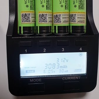 충전기에 전원이 꼽혀 있고, 충전기가 작동중에 배터리가 꼽혀 있는 1, 2, 3, 4 번중 하나를 선택하면 해당 채널의 배터리에 대한 전류(mA) / 용량(mAh) / 볼트(V) / 시간(h) / 상세 내용을 볼 수 있음.