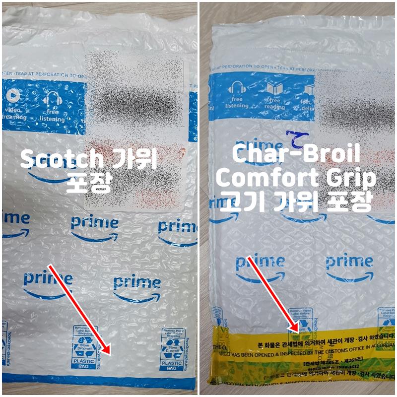 1. 택배 포장을 보자. 캠핑용 Char-Broil Comfort Grip 고기 가위 포장은 개봉 확인하였고, 스카치 정밀가위는 미개봉 상태로 배송이 되어 왔다. 어떤 경우에 개봉 확인을 하는지는 모르겠다. X-ray로 찍어서 가위가 이상하게 생겨서 그런가? 뭐~ 상관 없다.
